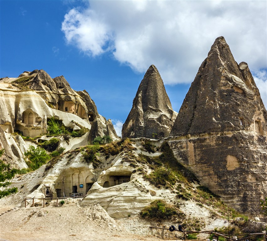 GÖREME (UNESCO) – jedna z největších přírodních zajímavostí v Turecku, kde byl v sopečných tufech dešťovou vodou vymodelován svět skalních věží, ve kterých lidé vyhloubili řady kostelů s freskovou výzdobou. Ráno průchod „MALÝM ÚDOLÍM LÁSKY“ na okraji Göreme s krásnými věžovitými útvary a výstup na vyhlídku nad údolím Göreme. Odpoledne prohlídka GÖREME OPEN AIR MUSEUM s kostely s nádhernými freskami (UNESCO). Křesťané tady na místech spojených s poustevníky a křesťanskými svatými mučedníky postupně vybudovali 365 kostelů, na každý den v roce prý jeden kostel. V rámci chráněné oblasti Göreme shlédneme několik nejlépe dochovaných kostelů s freskovou výzdobou pokrývající stěny i kopule kostelů. V rámci jednotlivých dnů může být zařazena krátká návštěva s ukázkami a možností zakoupení výrobků: onyx, keramika.
