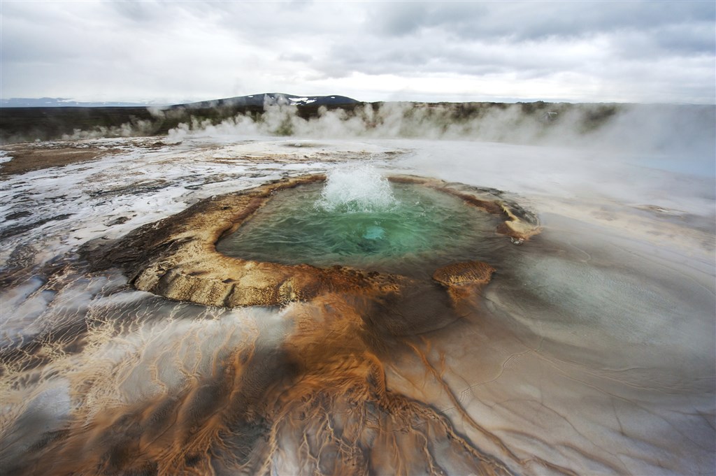 Dále navštívíme impozantní ZLATÝ VODOPÁD GULLFOSS, kde se masy vody řeky Hvítá řítí z výšky 32 metrů do dvoukilometrové rokle. V geotermální oblasti Haukadalur nás čeká slavný GEYSIR, známý už od 13. století, a především aktivnější STROKKUR, který chrlí vodu do výšky 15–30 metrů.