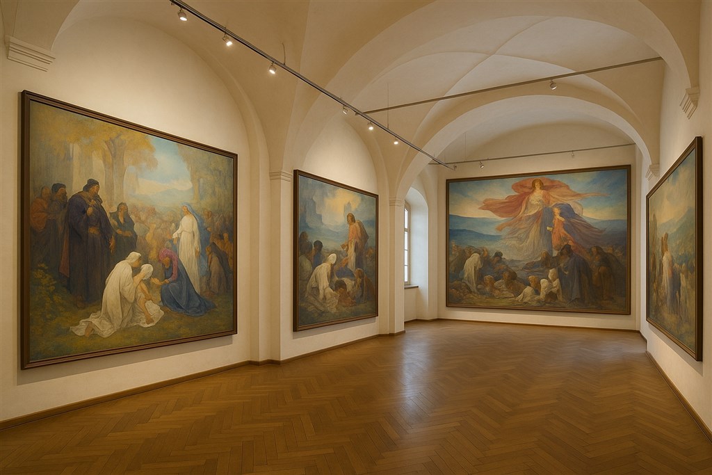 - Cyklus 20 monumentálních pláten Alfonse Muchy s výjevy z historie Slovanů.