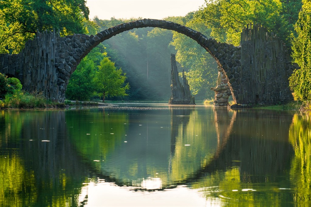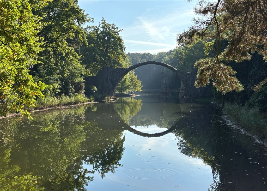 Jedno z nejfotografovanějších míst Německa – ikonický kamenný most (Rakotzbrücke), který se v odrazu vody promění v dokonalý kruh. Nezapomenutelný zážitek i fotografie. - Zámecký park Bad Muskau (UNESCO)