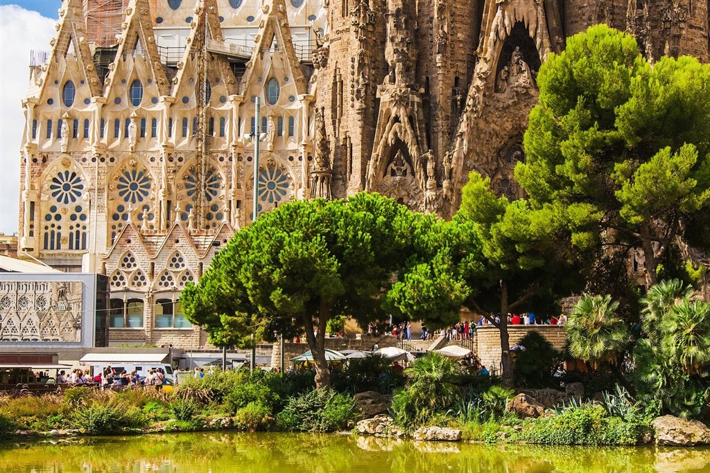 chrám sv. Rodiny (Sagrada Familia) jen exteriér, Montjuic – Národní palác, olympijský stadion.