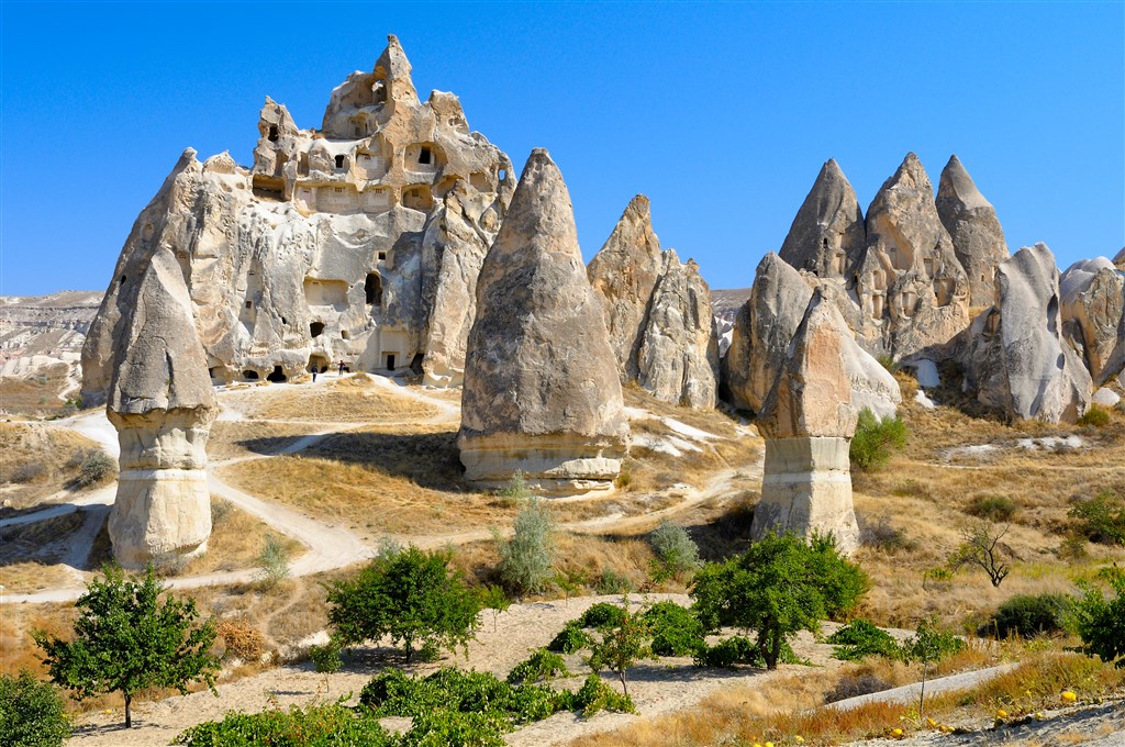 Göreme – Cavuȿin – Paȿabag – Red Valley – Rose Valley – Ak Dag - Pigeon Valley - Kaymakli – Güzelyurt – kaňon Ihlara – Selime - údolí Soğanlı – Eski Gümüsler - Love Valley - White Valley - Uçhisar